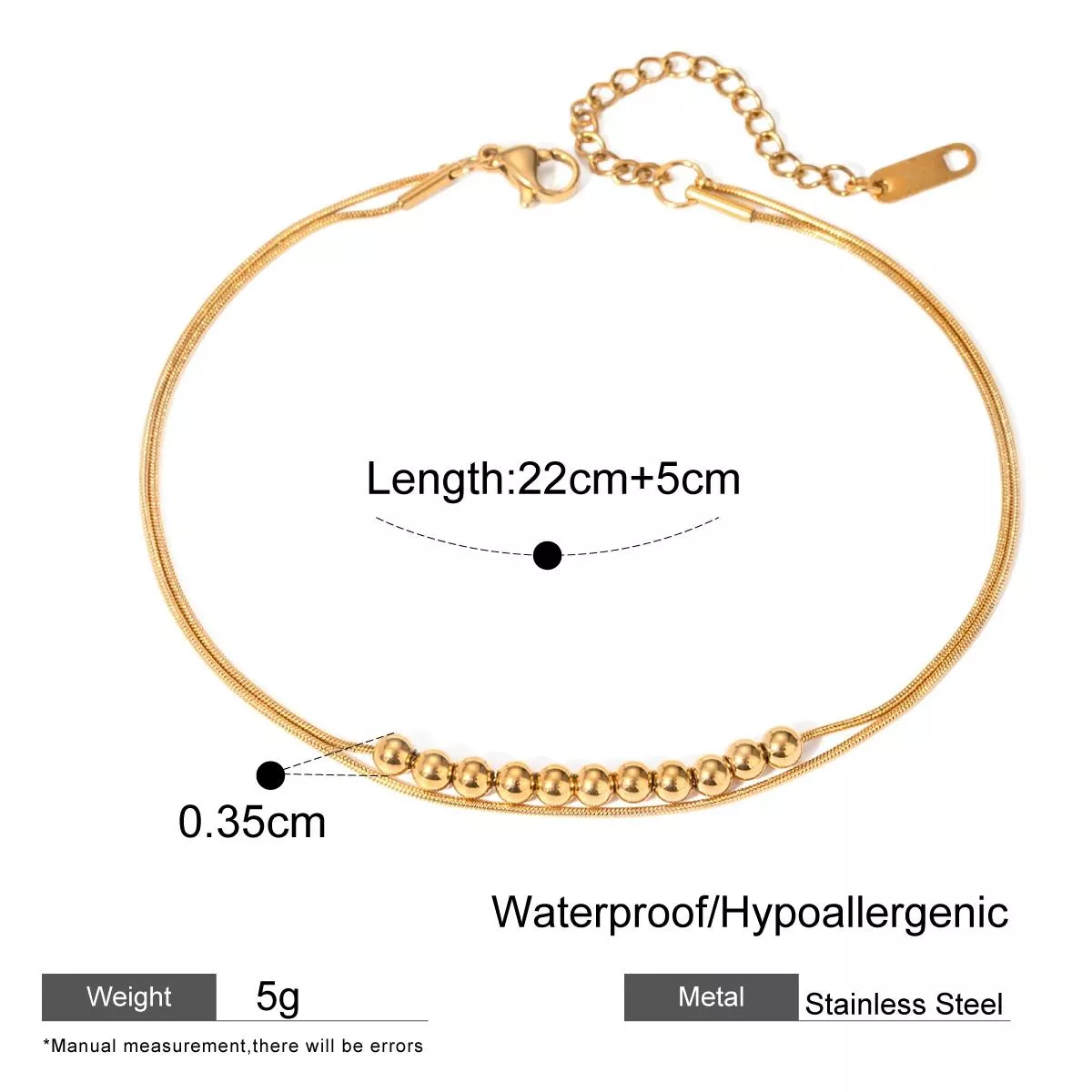 18K Gold Plated Waterproof Snake Chain Anklet with Shell & Steel Ball Accents