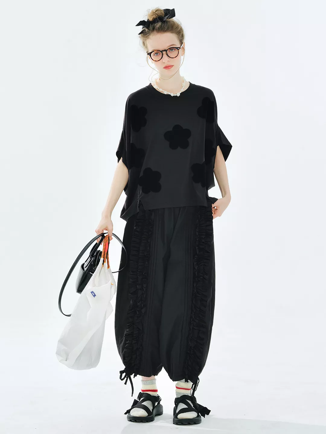 This isn’t your average summer T-shirt. With its unique applique accents and Japan-inspired aesthetic, it gives off an effortless charm. The drop sleeves and slightly boxy shape add to its fashion-forward vibe, while the soft blended fabric ensures you feel as good as you look. This tee brings a modern artistic touch to everyday style—perfect for those who crave more than basics in their closet.