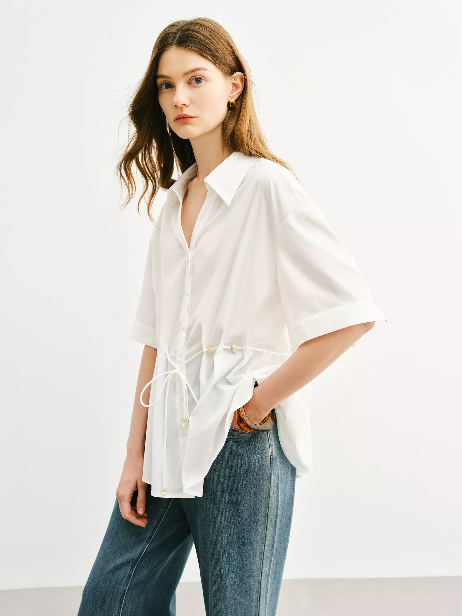 This shirt is best worn during spring and summer when breathable and stylish clothing is key. It stands out with its tasteful blend of details—from the intricate beadwork to the gently pinched pleats—making it anything but ordinary. Whether you’re running errands, meeting friends for brunch, or heading to a casual office setting, this top keeps you comfortable and looking effortlessly chic.