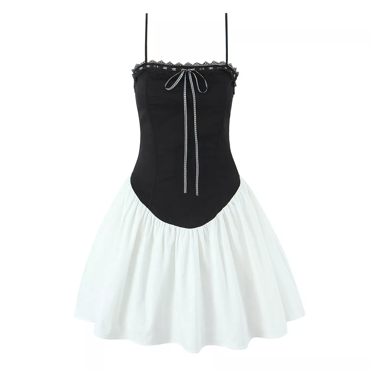 Step into the spotlight with this stunning Black and White Patchwork Spaghetti Strap Mini Dress. Designed to hug your curves in all the right places, this dress brings together bold contrast and sleek minimalism for an ultra-modern look. Perfect for warm weather, summer nights out, or daytime events, this slim A-line dress is made to flatter and designed to impress.