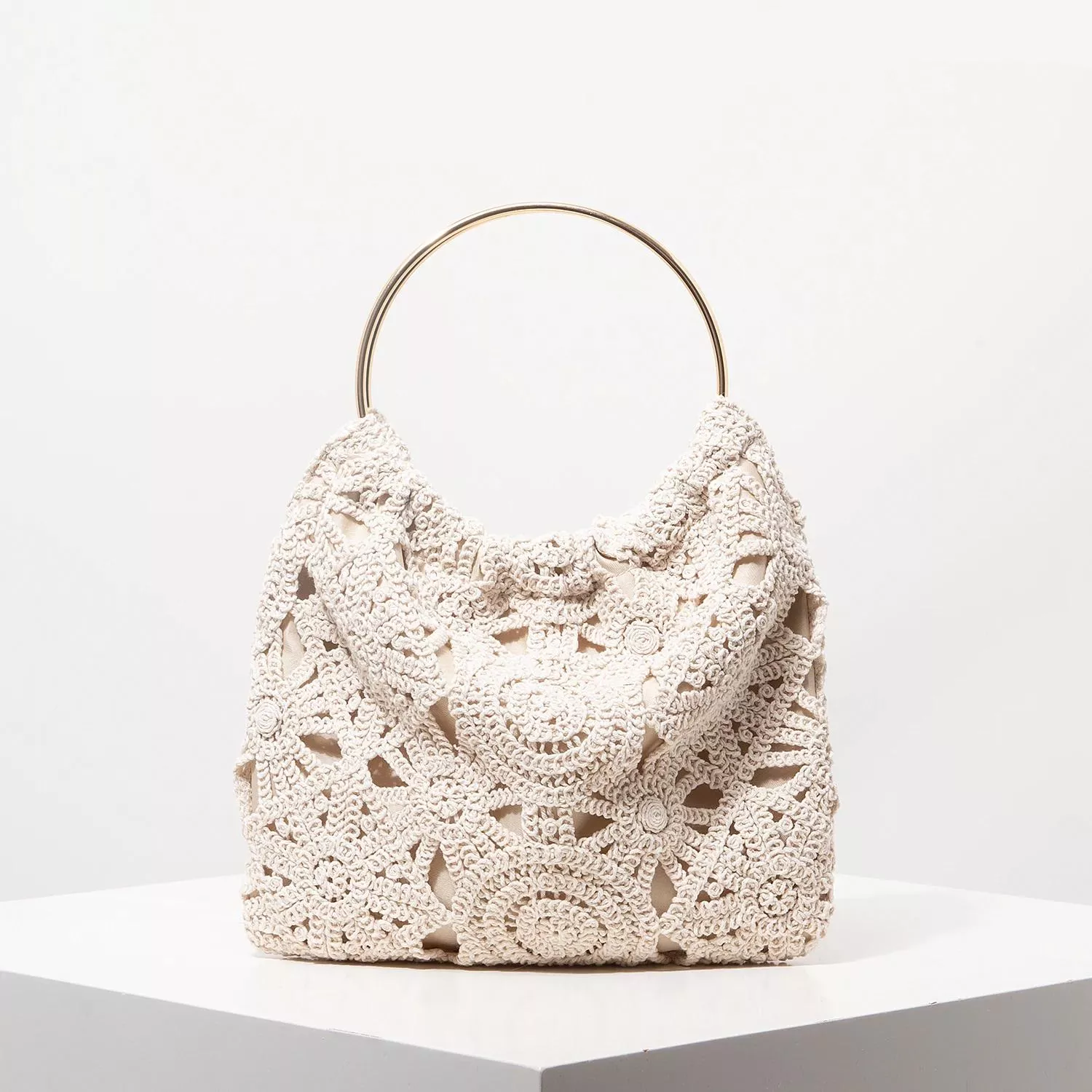 Boho Hollow Woven Crochet Beach Bag – Summer Vacation Travel Handbag