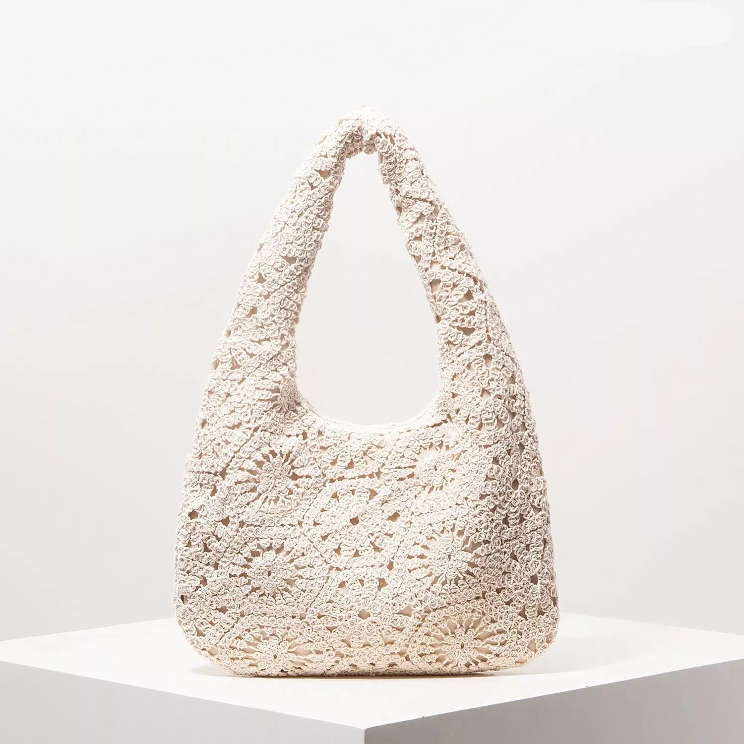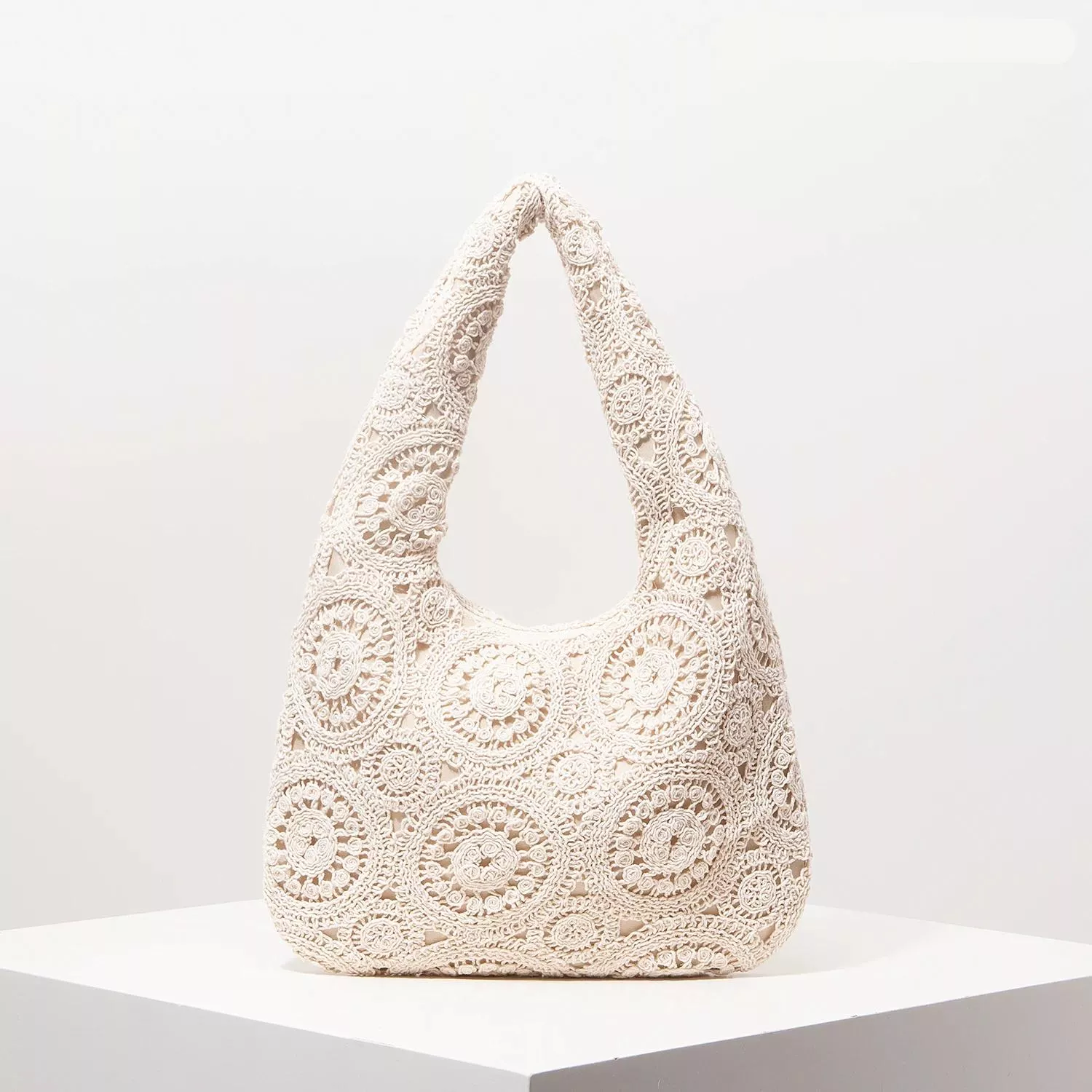 This half-moon shaped shoulder bag is made from high-quality polyester with a soft feel and lightweight finish. The crochet-style hollow out design adds a handmade touch that feels both artisanal and premium. With a single sturdy strap and versatile structure, it’s ideal for shoulder carrying without weighing you down. The soft construction and breathable knit pattern make it the perfect spring and summer essential. It features a secure lined interior, allowing you to keep your vacation must-haves organized and easy to reach.