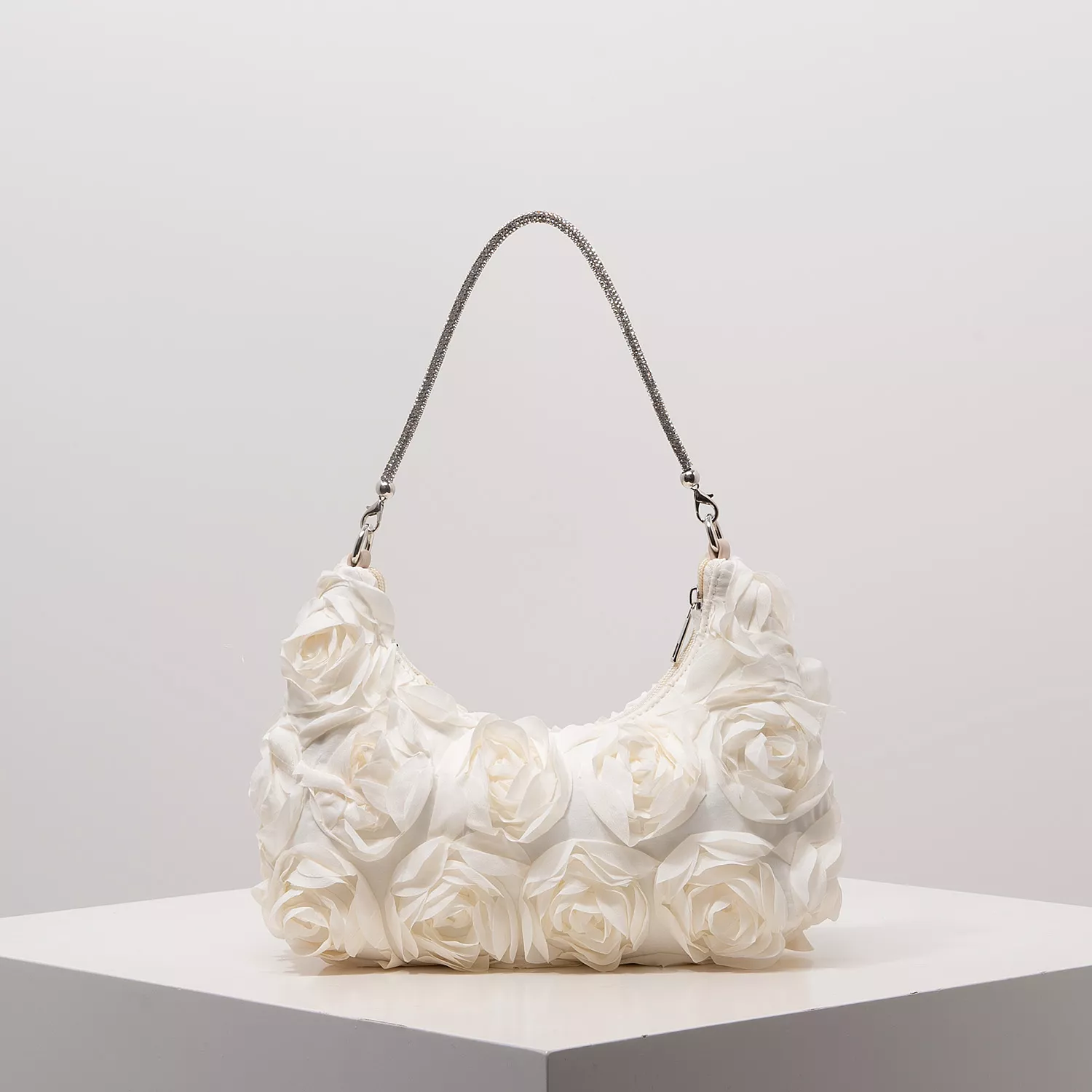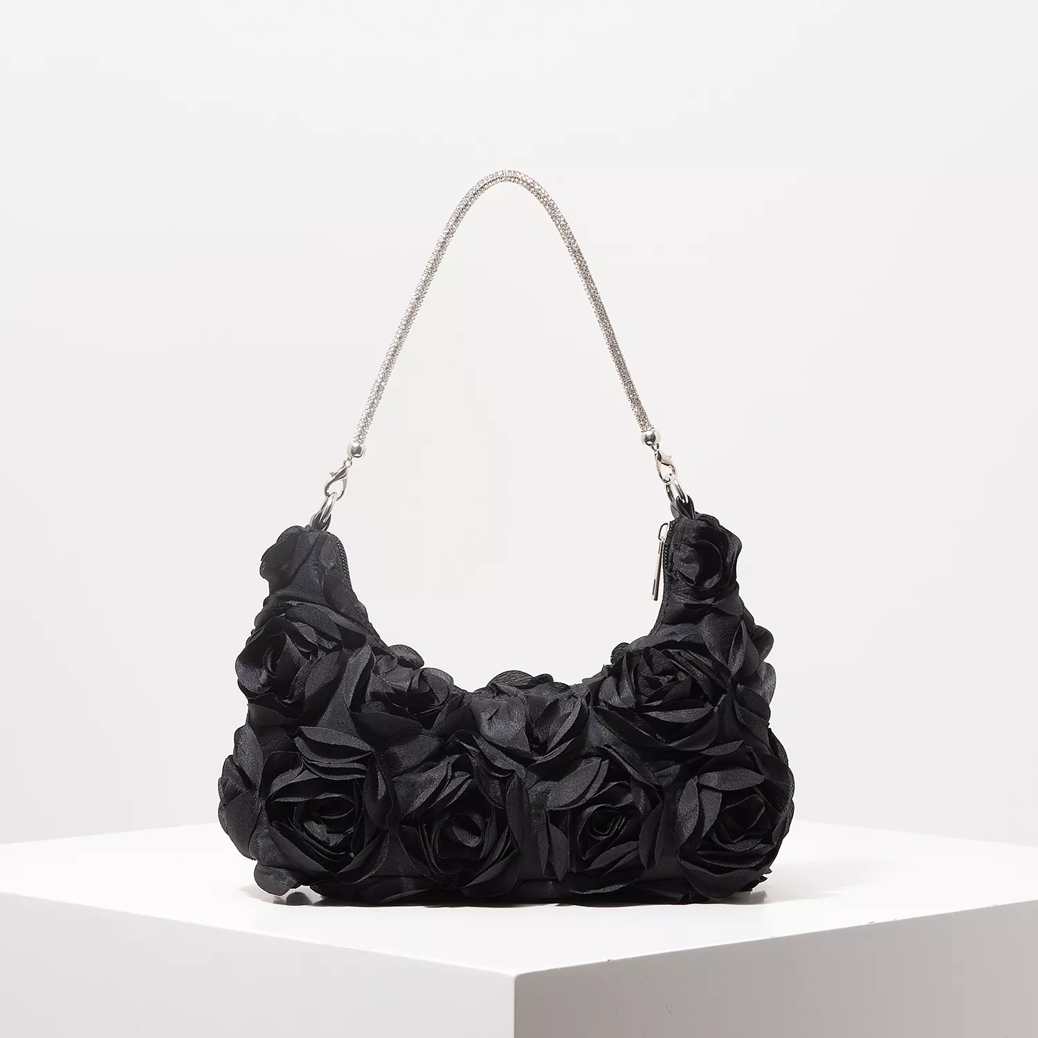 Turn heads and steal the spotlight with this breathtaking Rose Flower Shoulder Bag – the perfect blend of luxury and charm. Designed for the woman who adores elegance, this half-moon shaped handbag brings a fresh, floral twist to your evening ensemble. Whether you’re heading to a prom, wedding, or glamorous party, this bag adds a touch of sparkle and sophistication to your look.