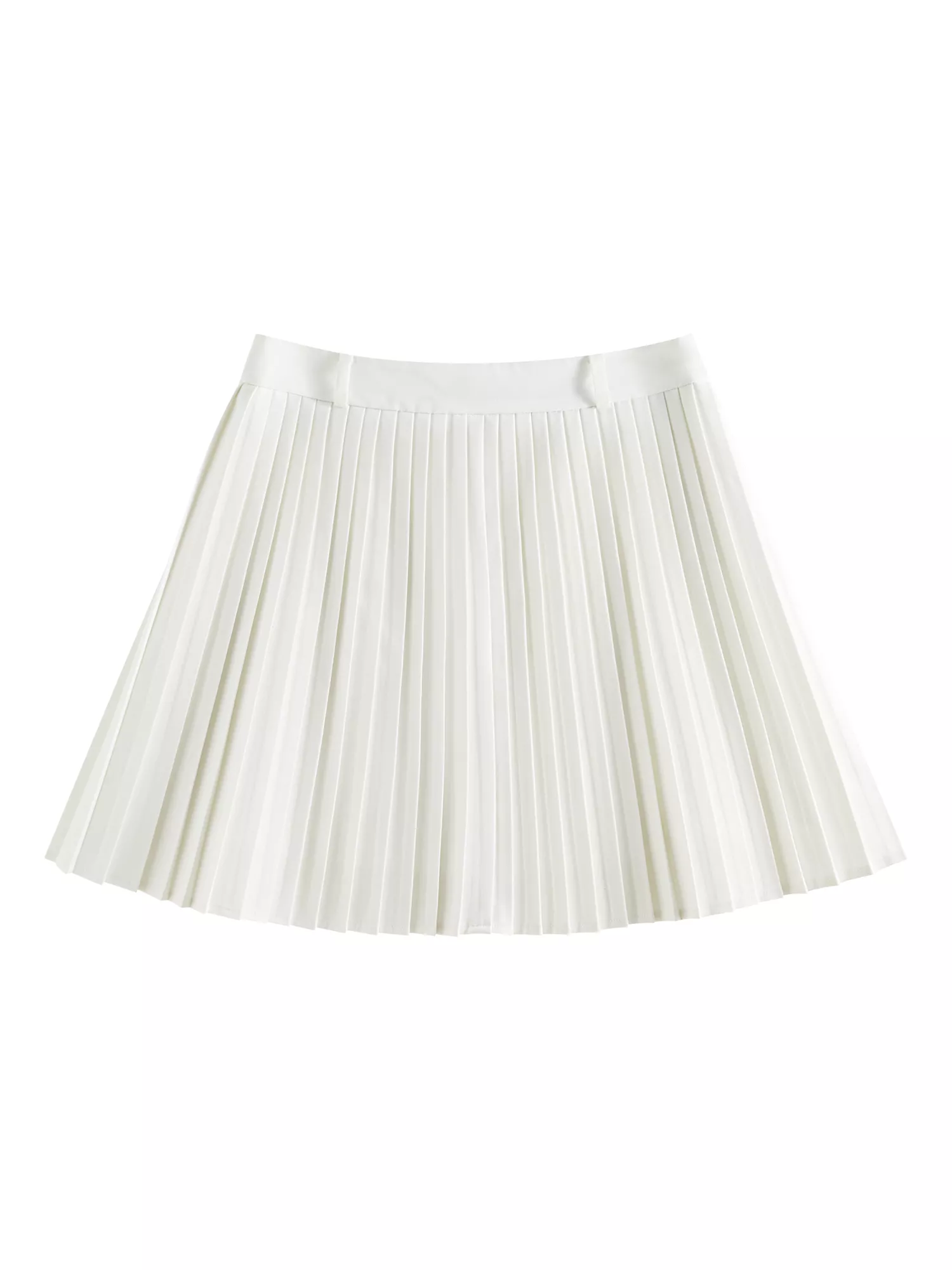 Bring timeless elegance and summer-ready style to your closet with this white wool-blend pleated mini skirt. Whether you’re dressing up or down, it’s the piece that ties it all together. Add it to your wardrobe now and redefine everyday style with grace.