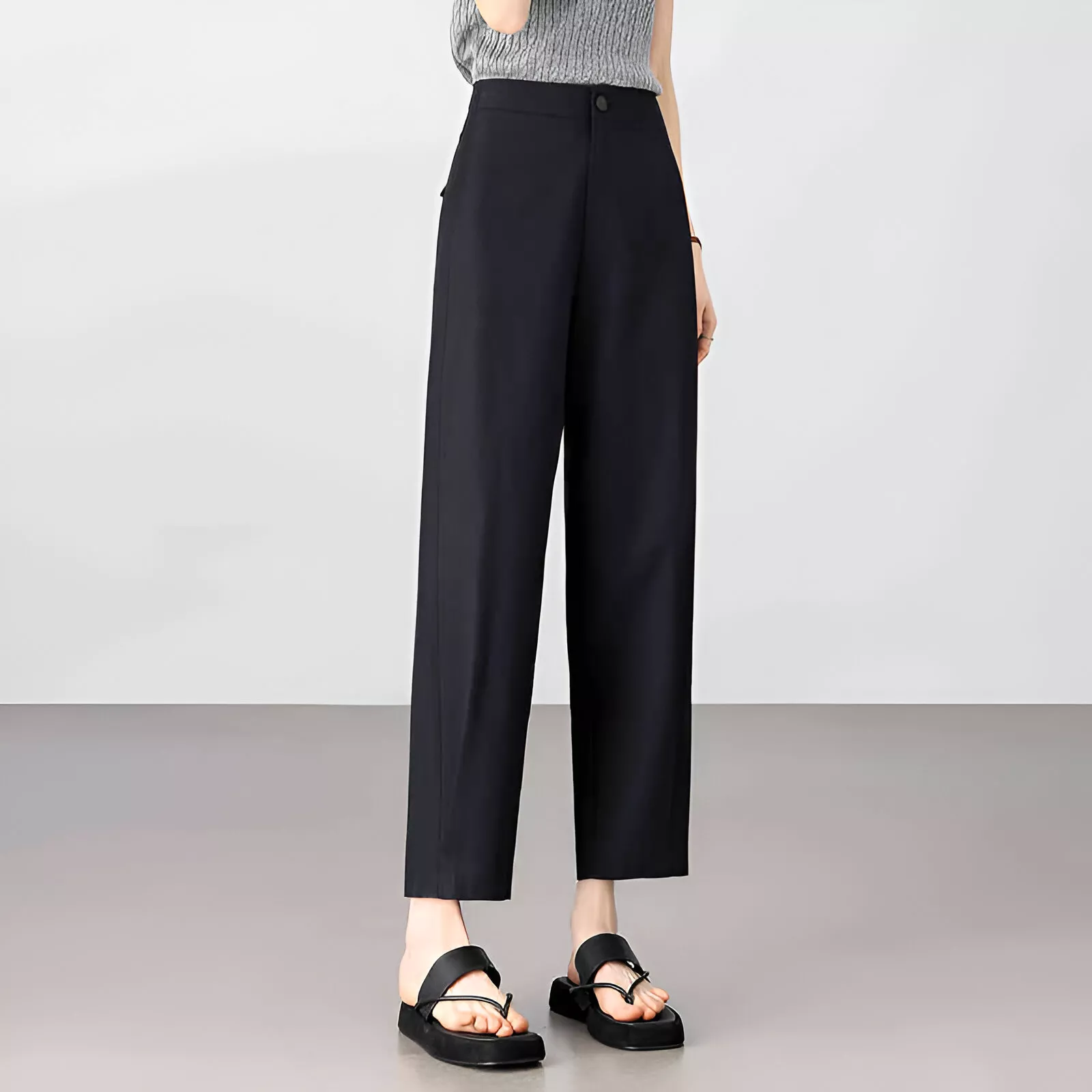 High-Waist Lyocell Cotton Office Pants for Women – Ankle-Length, Straight Fit