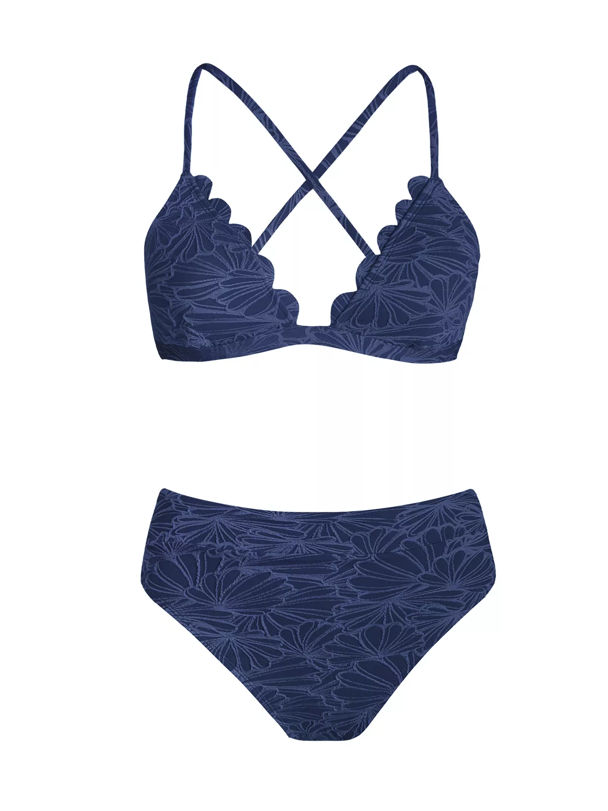 This two-piece swimsuit is more than just beachwear—it’s a confidence booster. Ideal for beach days, resort vacations, tropical getaways, and water sports, it combines function and fashion effortlessly. The solid jacquard texture sets it apart from ordinary bikinis, making it a standout addition to your swimwear collection. Plus, the scalloped edges bring a subtle elegance that elevates your whole look.