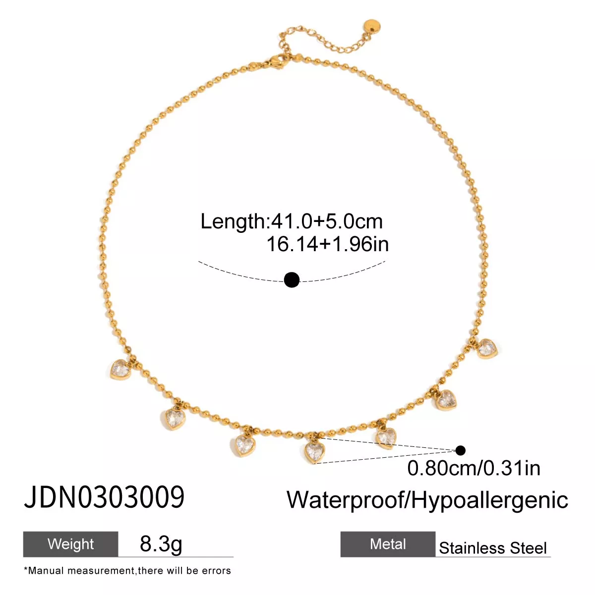 Minimalist Heart Zircon Gold Bead Chain Necklace