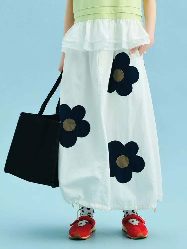 What makes this skirt special is the combination of natural materials, Japanese-inspired elegance, and thoughtful details. The appliques and slightly textured fabric give it a handcrafted feel that’s hard to find in mass-market clothing. It’s a piece you’ll reach for again and again when you want to feel effortlessly beautiful.