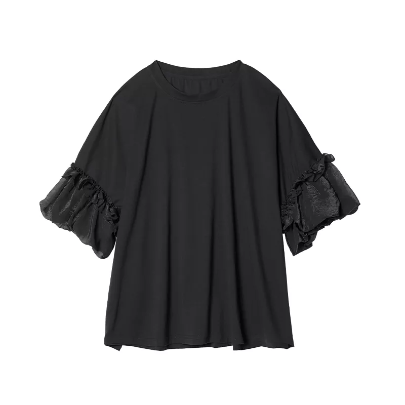 Designed with drop shoulders and half-length lantern sleeves, it offers a flattering shape and an airy feel that’s perfect for warmer days. The subtle stretch in the fabric ensures you can move freely while staying cool and relaxed. Whether you’re heading out for a casual brunch, a walk in the park, or a creative gathering with friends, this top will quickly become your go-to favorite.