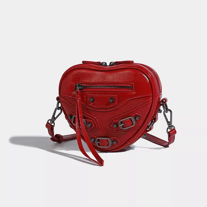 What makes this bag truly special is its rare blend of contrasting fashion moods — a little sweet, a little fierce, and completely unforgettable. The intricate rivet details and heart motif speak volumes about your confidence and creativity. It’s not just a bag – it’s a style statement.