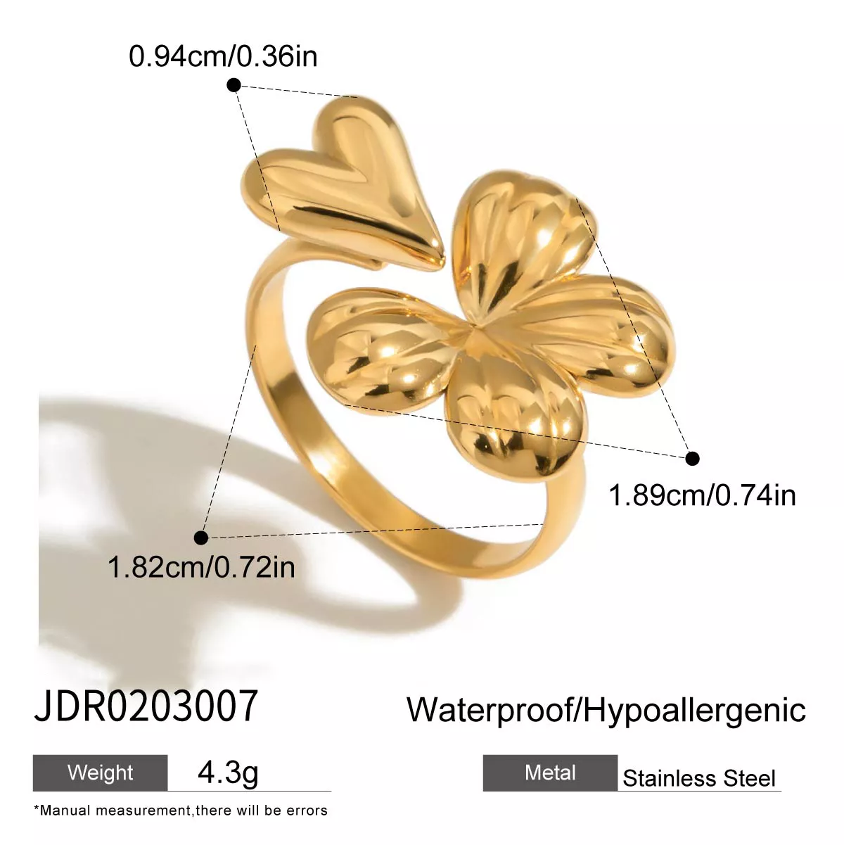 Designed to be worn every day, this heart flower open ring pairs perfectly with any outfit. Its versatility makes it suitable for both formal and casual events, allowing you to create a chic look no matter the occasion. Plus, the ring’s waterproof feature makes it practical for daily wear, whether you’re washing your hands or enjoying a sunny day outdoors.