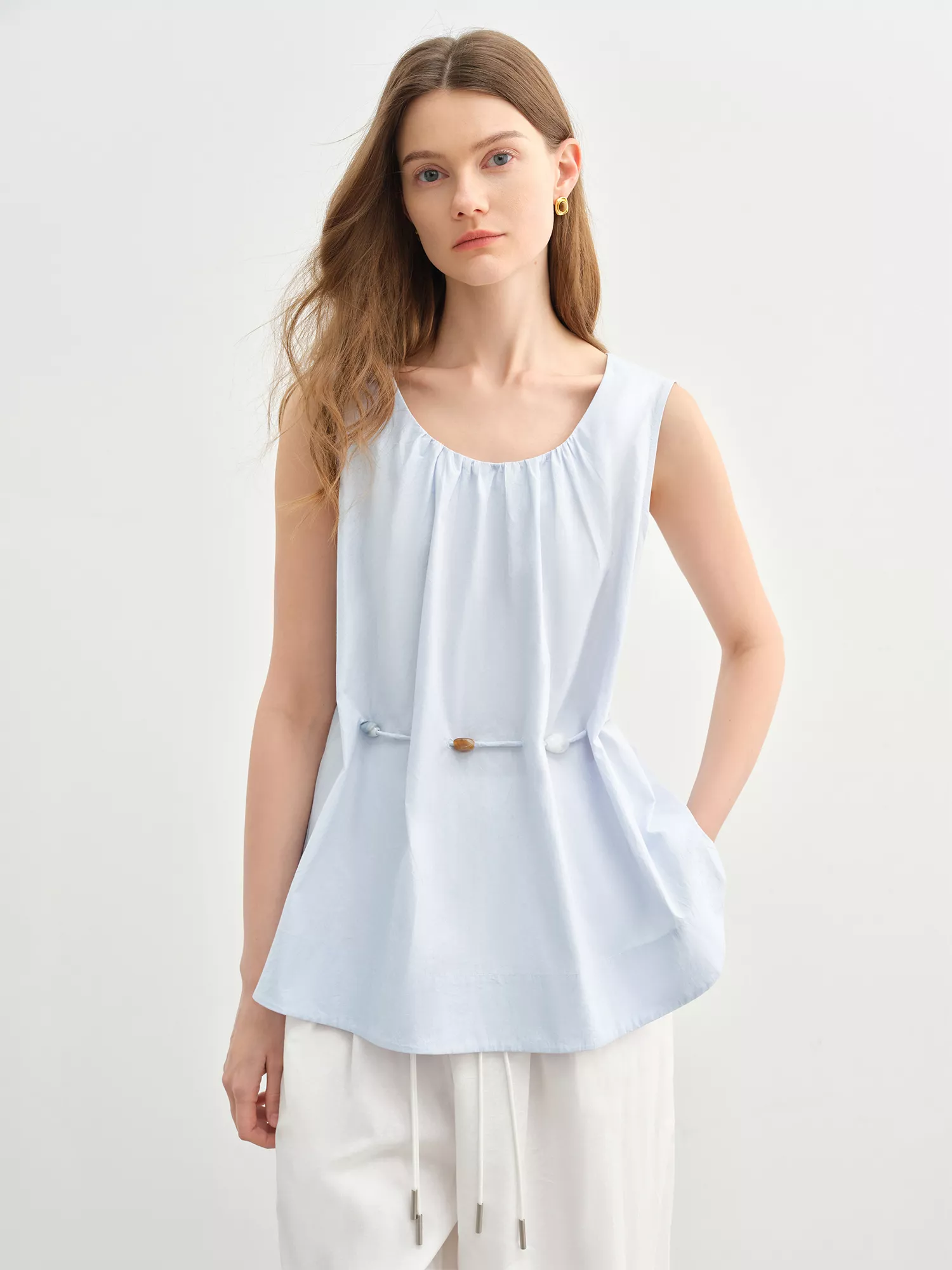 Turn heads this spring and summer with this beautiful sleeveless top that blends relaxed charm with a hint of refined detail. Designed for women who love to feel comfortable without compromising on style, this breathable cotton shirt is your new go-to for sunny weekends, seaside escapes, or casual days out. The soft blue color and subtle wave beading add a graceful touch, while the relaxed silhouette flatters all body types with ease.
